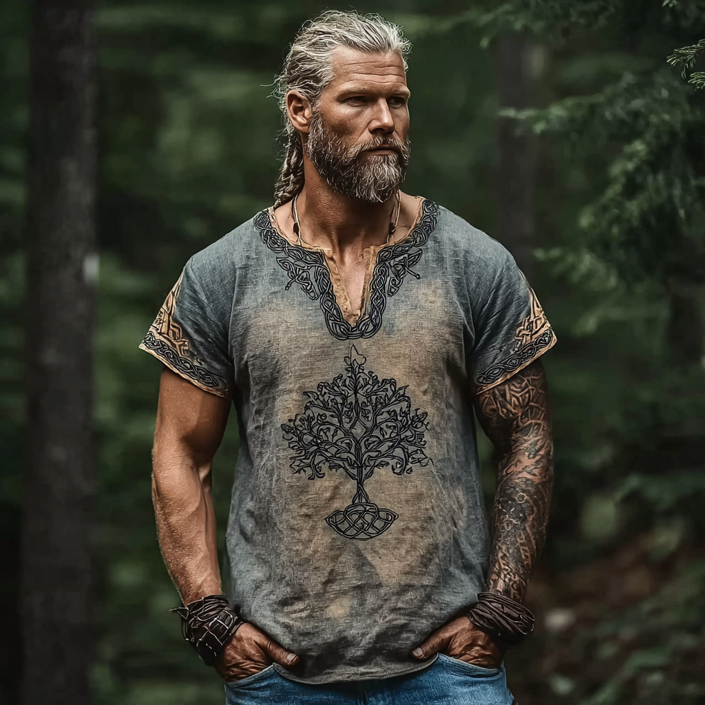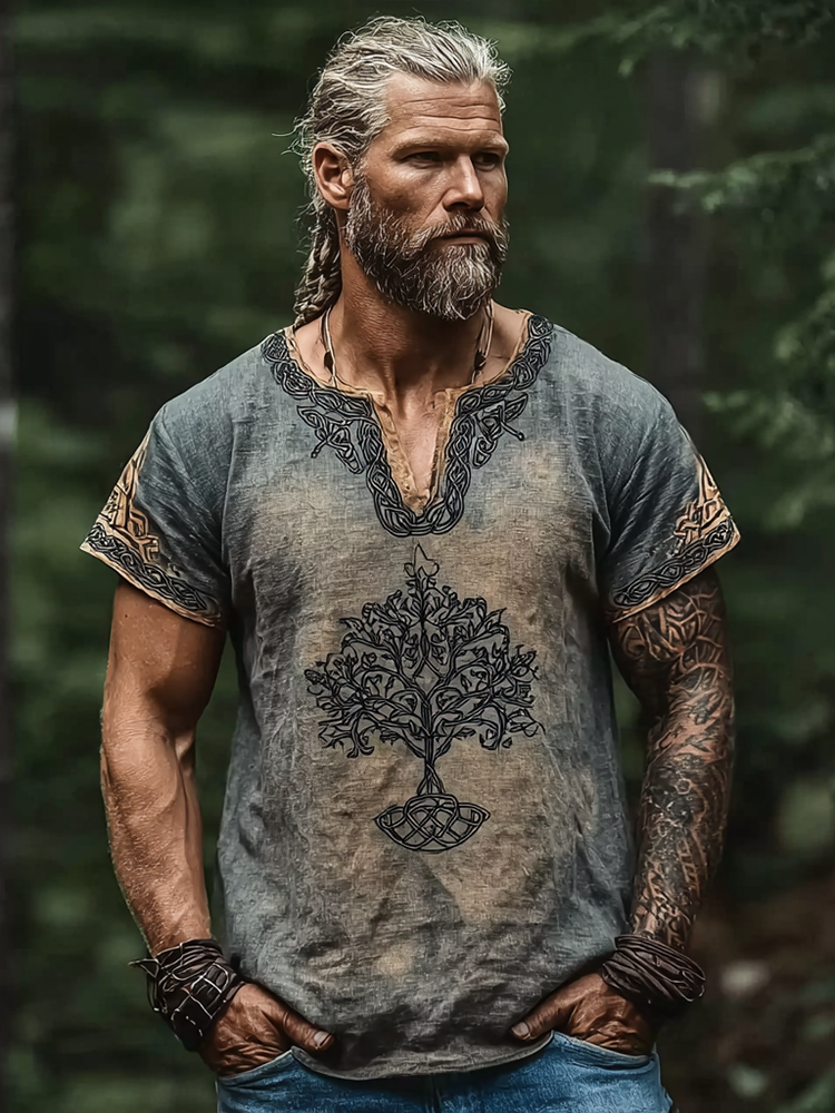 Men's Viking Mythology Celtic Knot Cotton Linen T-shirt