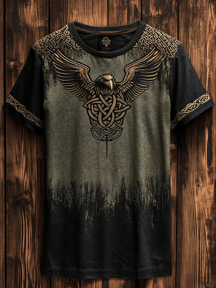 Men's Viking Tribal Jacquard Celtic With Wings Inspired Art Print Short-sleeve T-shirt