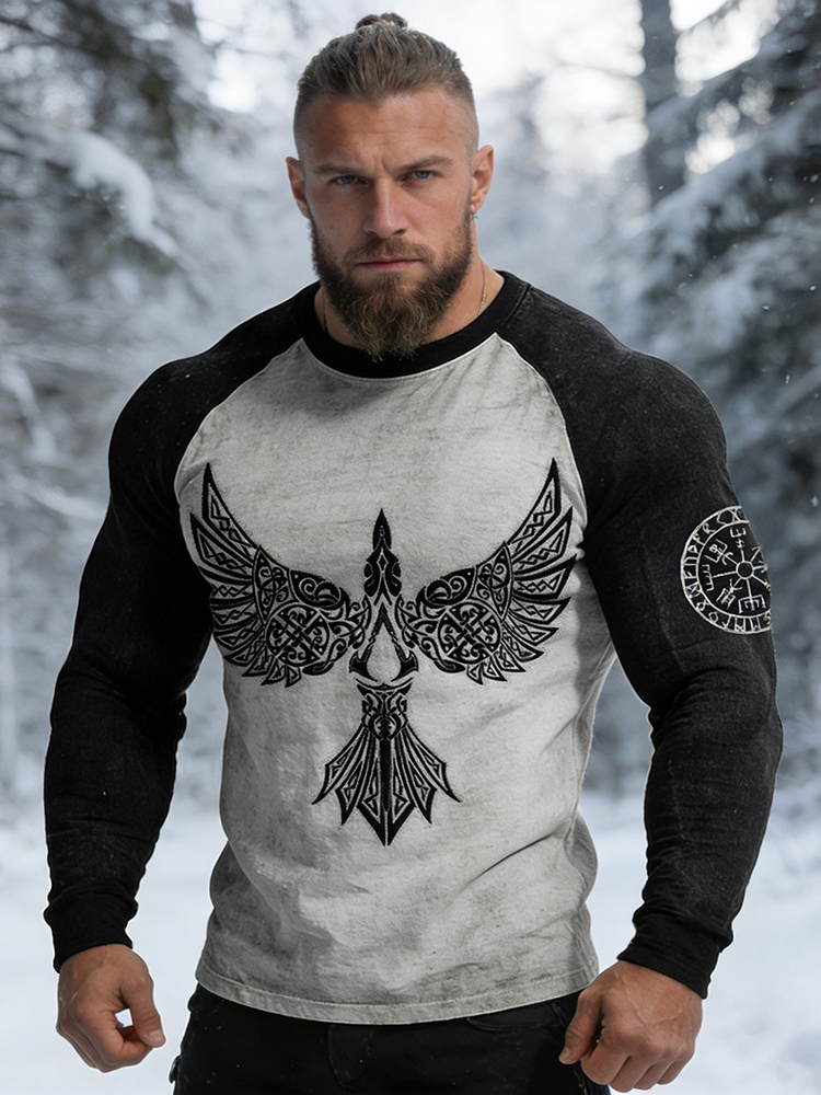 Men's Viking Vegvisir Celtic Eagle Contrast Cozy T Shirt