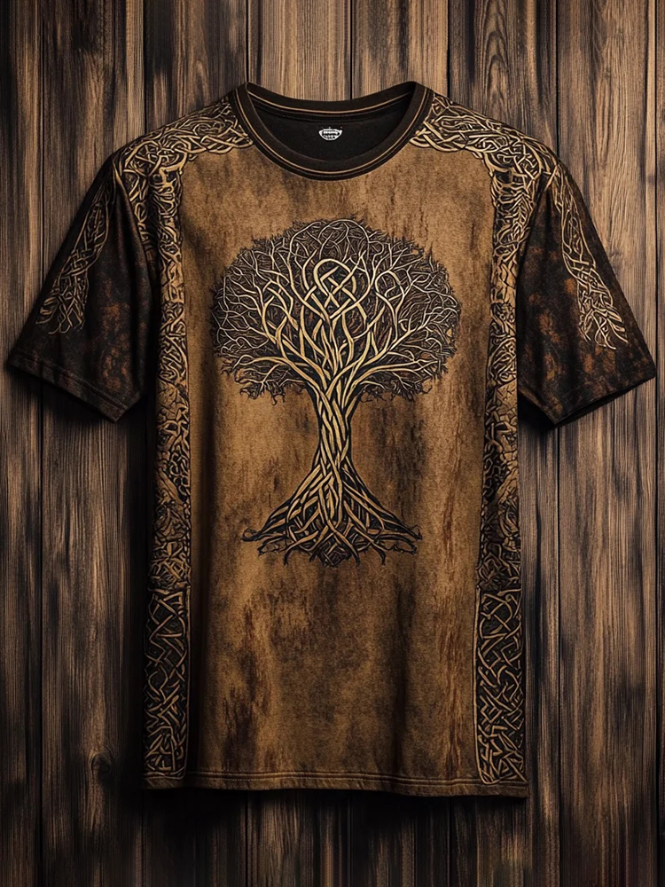 Men's Vintage Viking Tree Of Life Graphics Acid Wash T-shirt