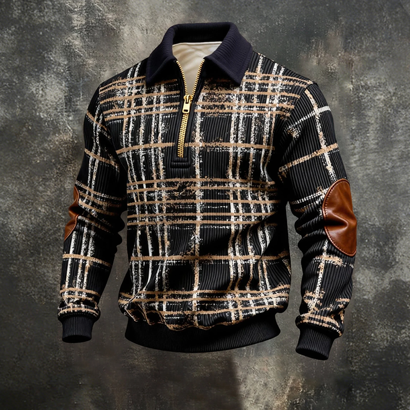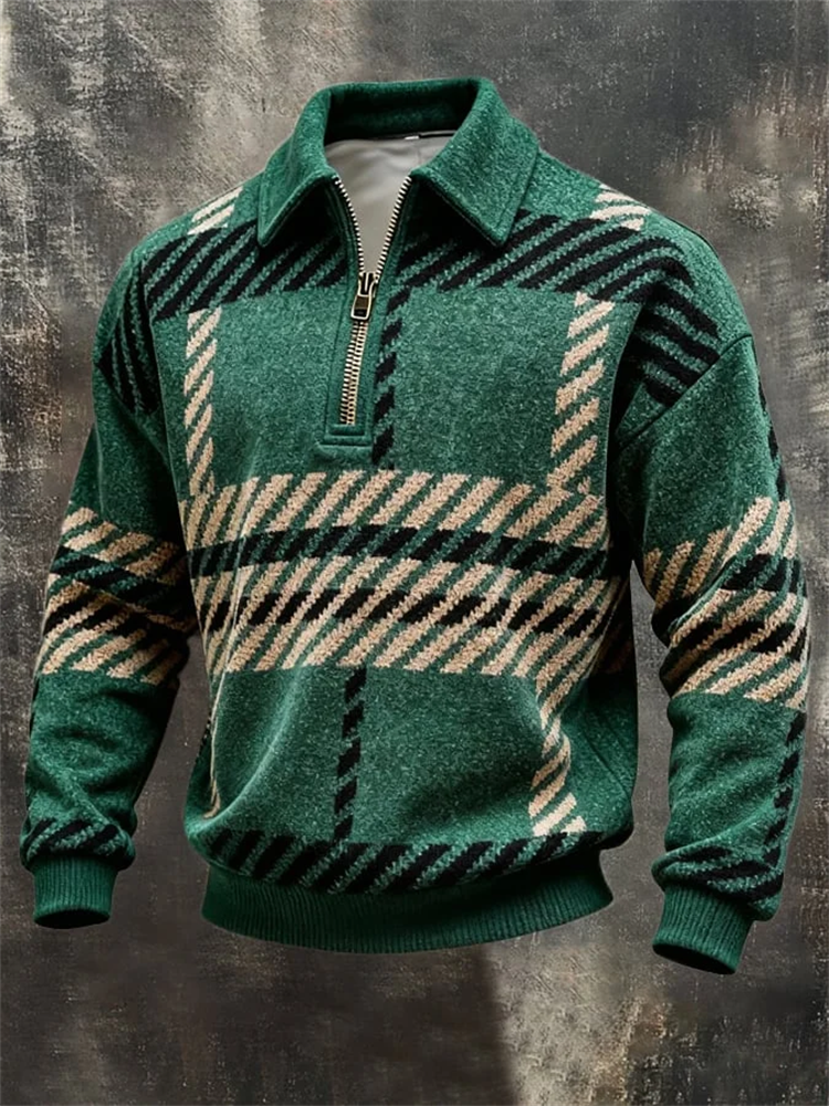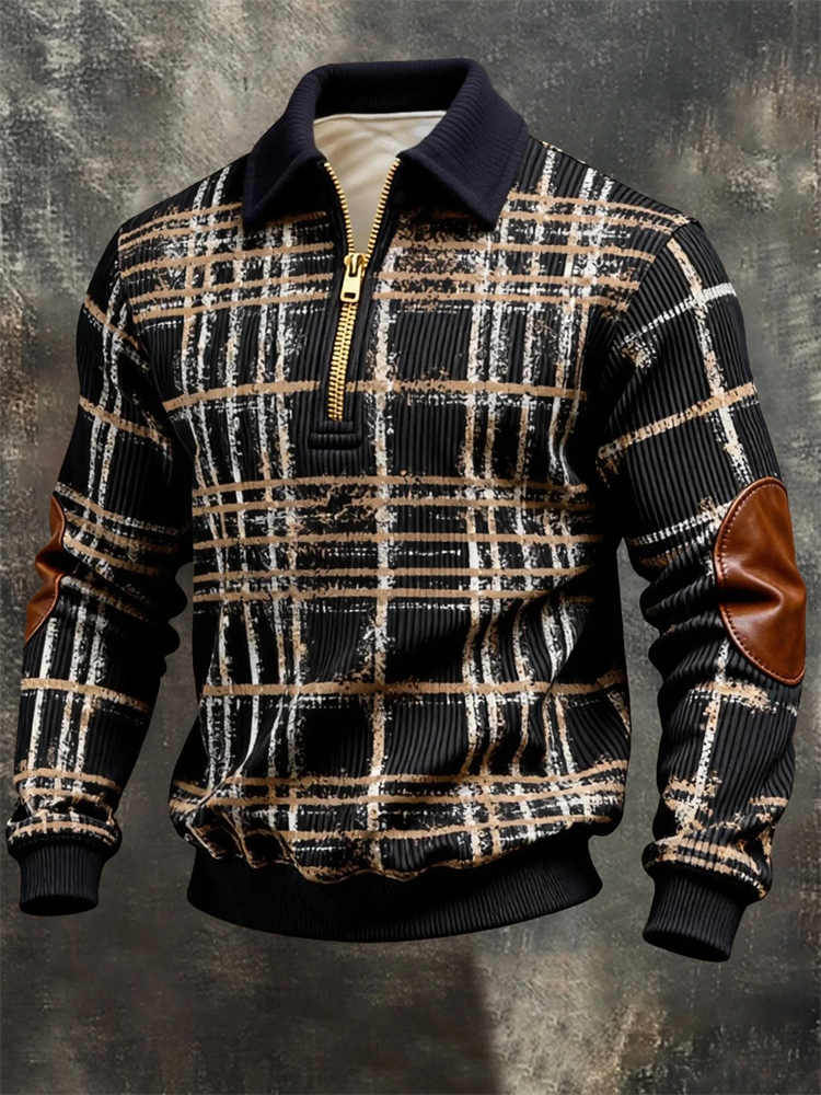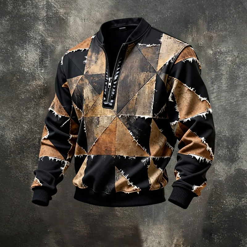 Men's Retro Color-block Print Half Zip Sweatshirt