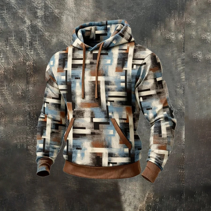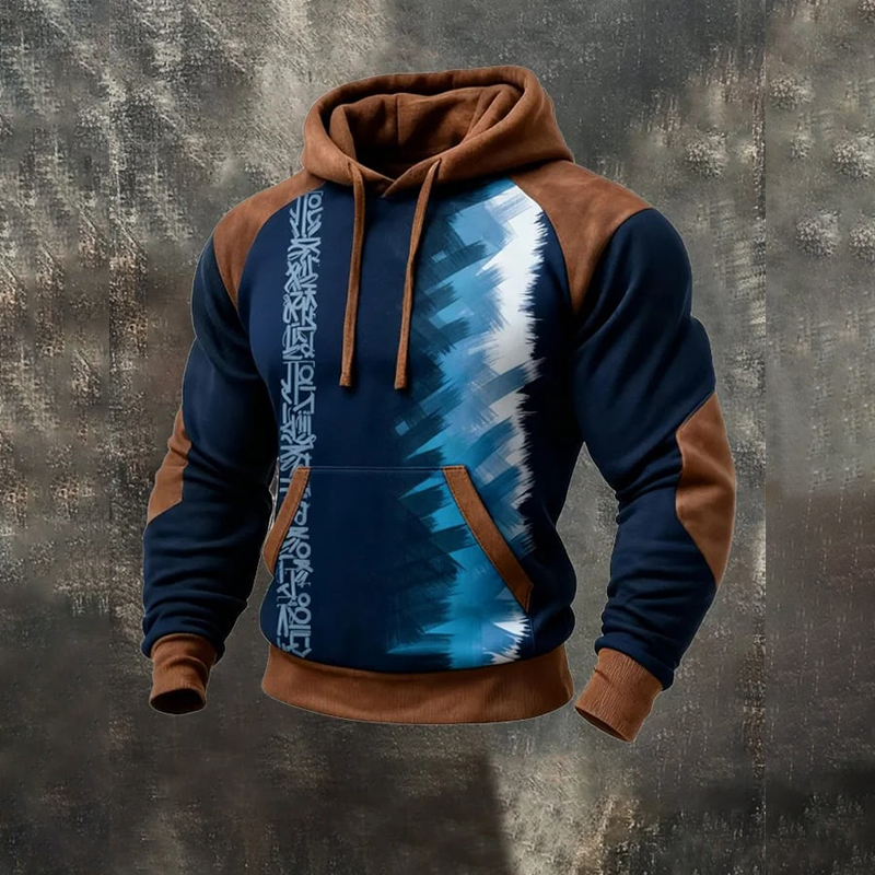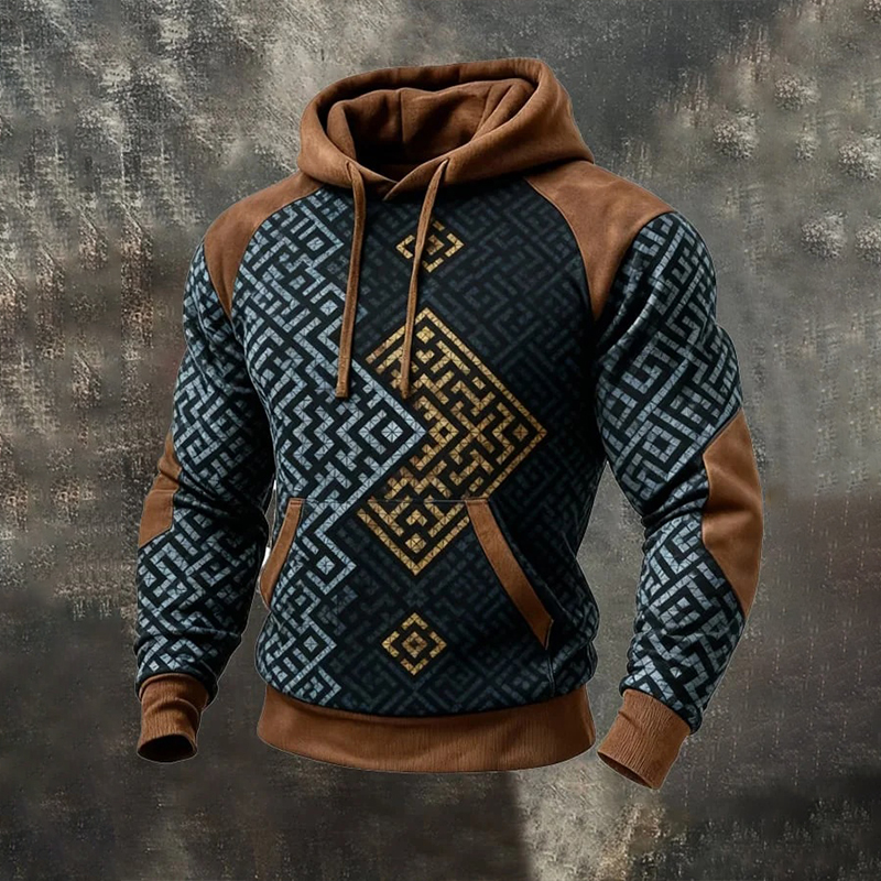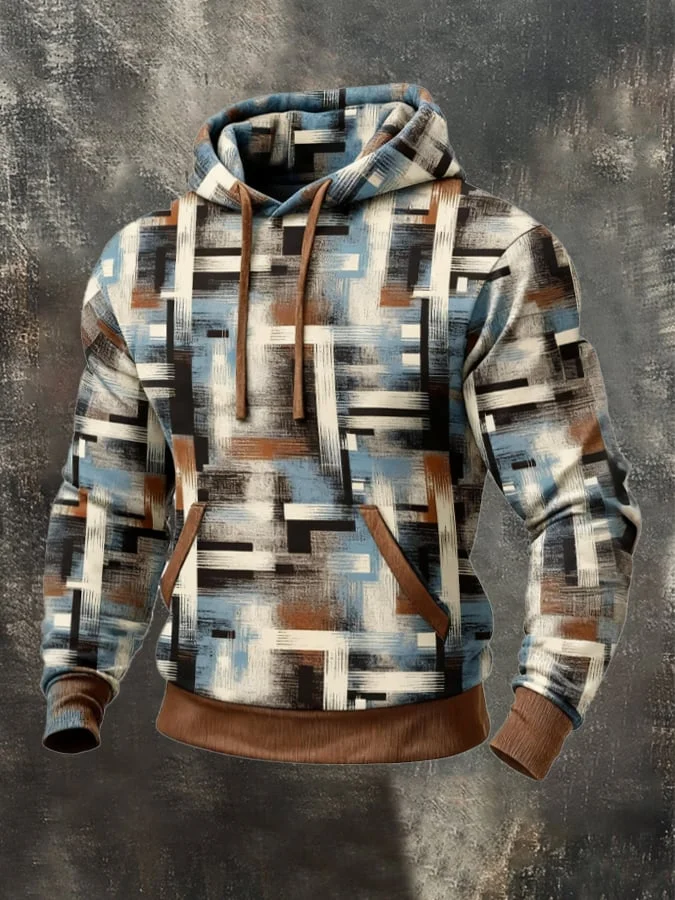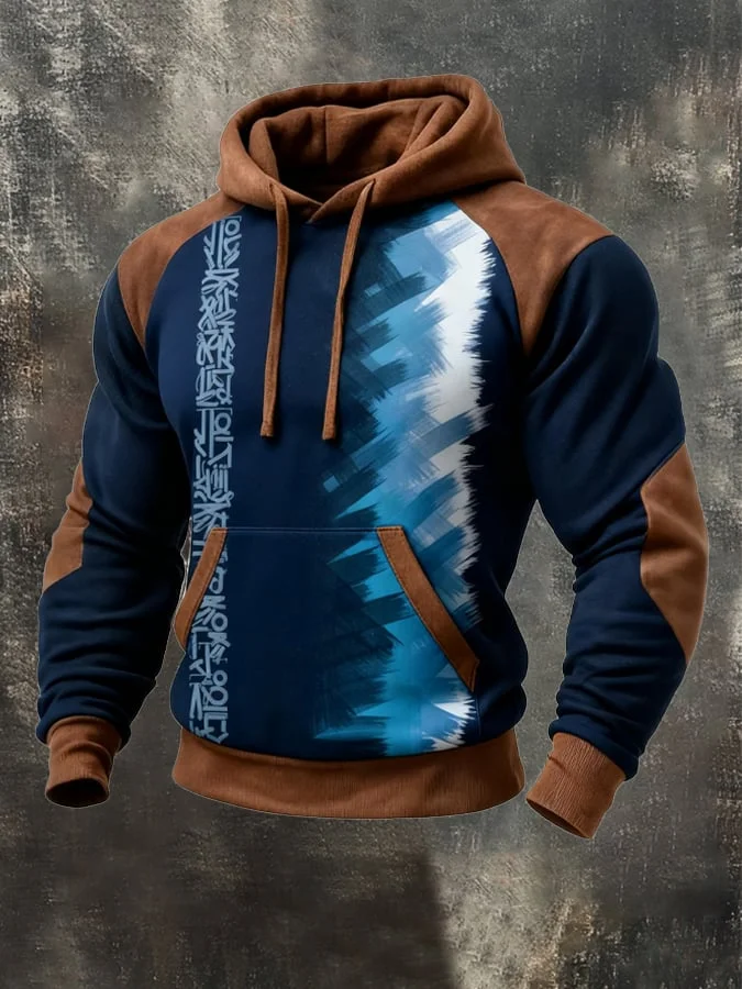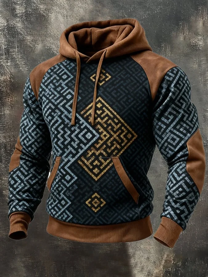Men's Retro Color-blocked Pattern Casual Hoodie