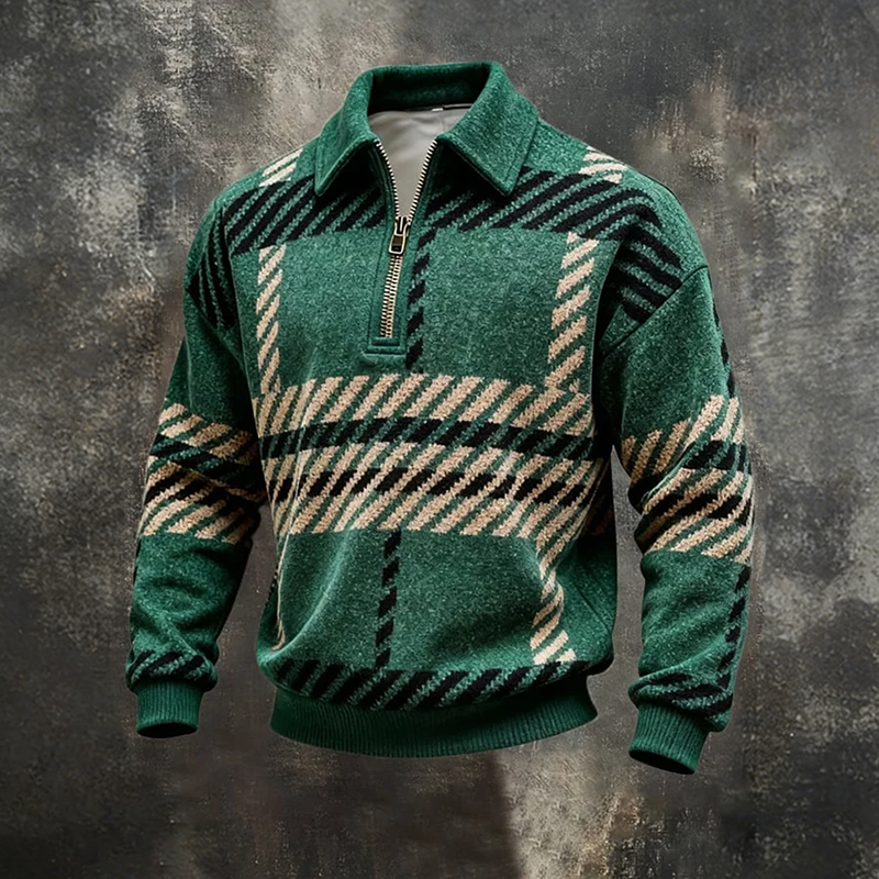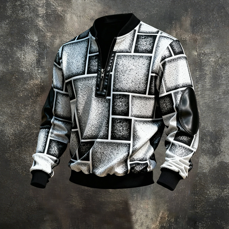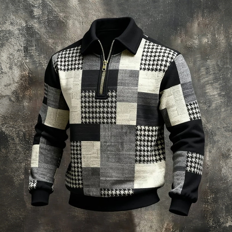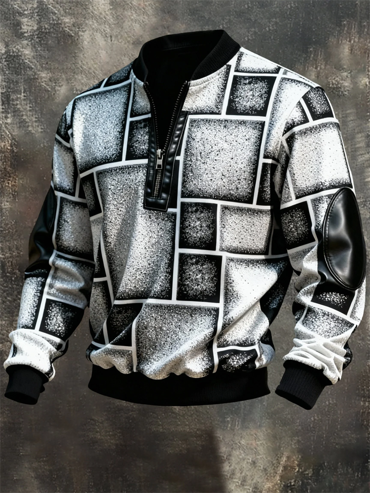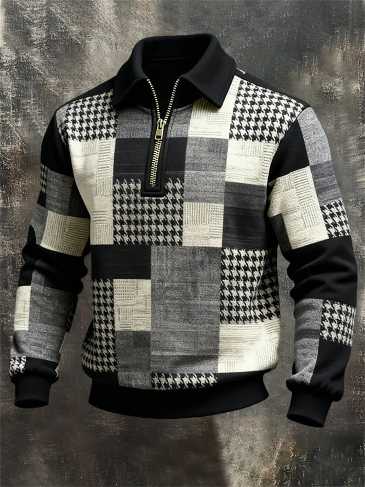 Men's Houndstooth Art Contrast Color Print Half Zip Sweatshirt