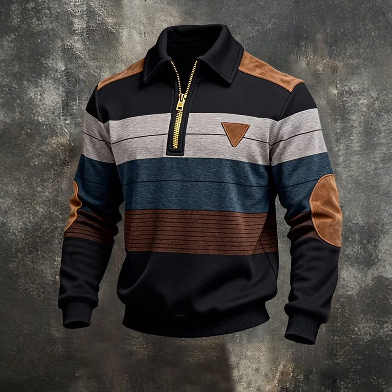Men's Vintage-style Color-block Long-sleeved Sweatshirt