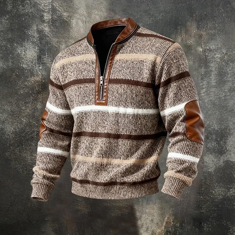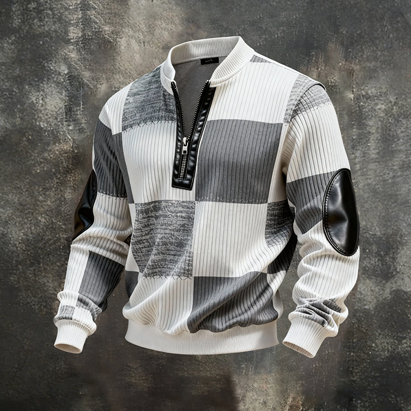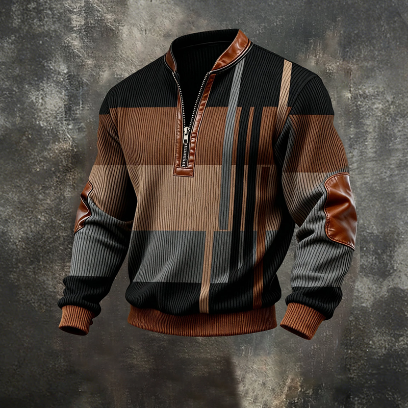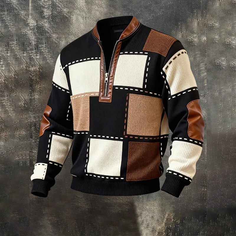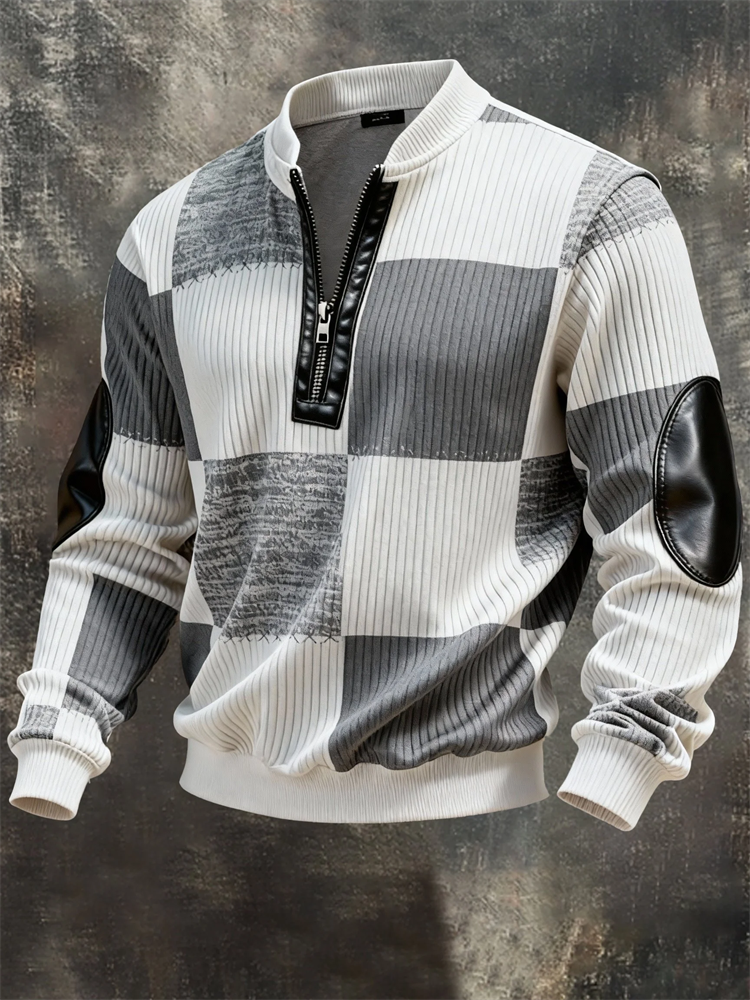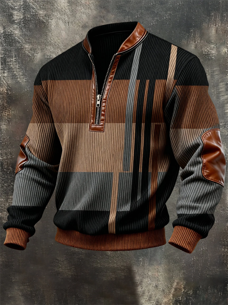 Men's Vintage-style Textured Patchwork Color-block Long-sleeved Sweatshirt