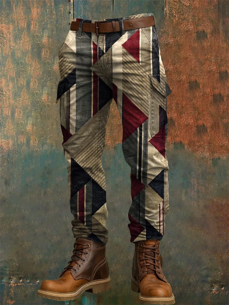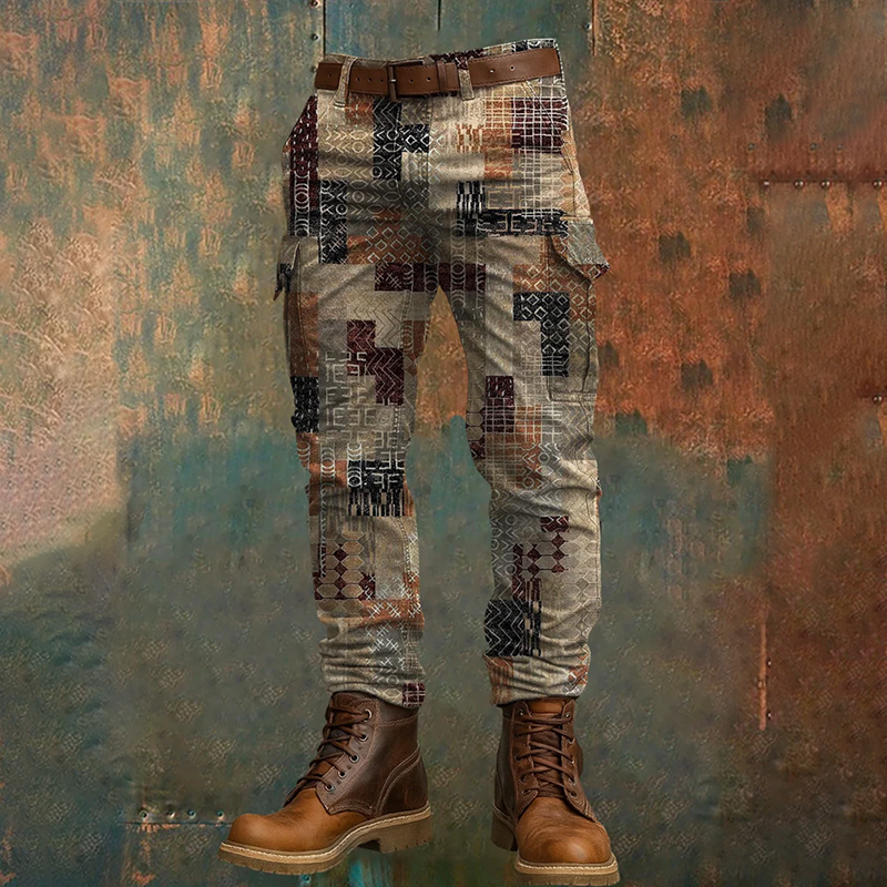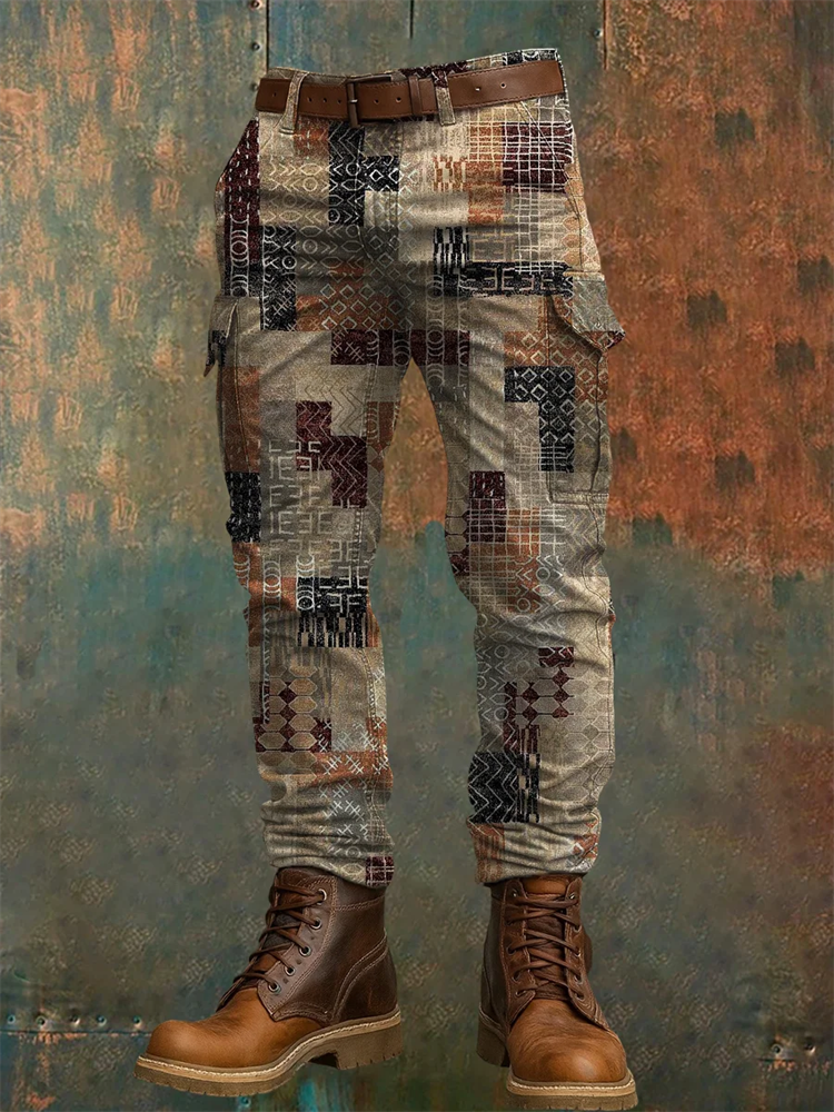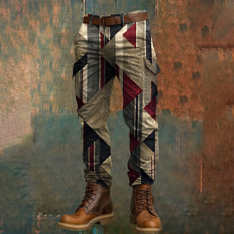 Men's Vintage Leopard Print Geometric Pattern Casual Sweatpants