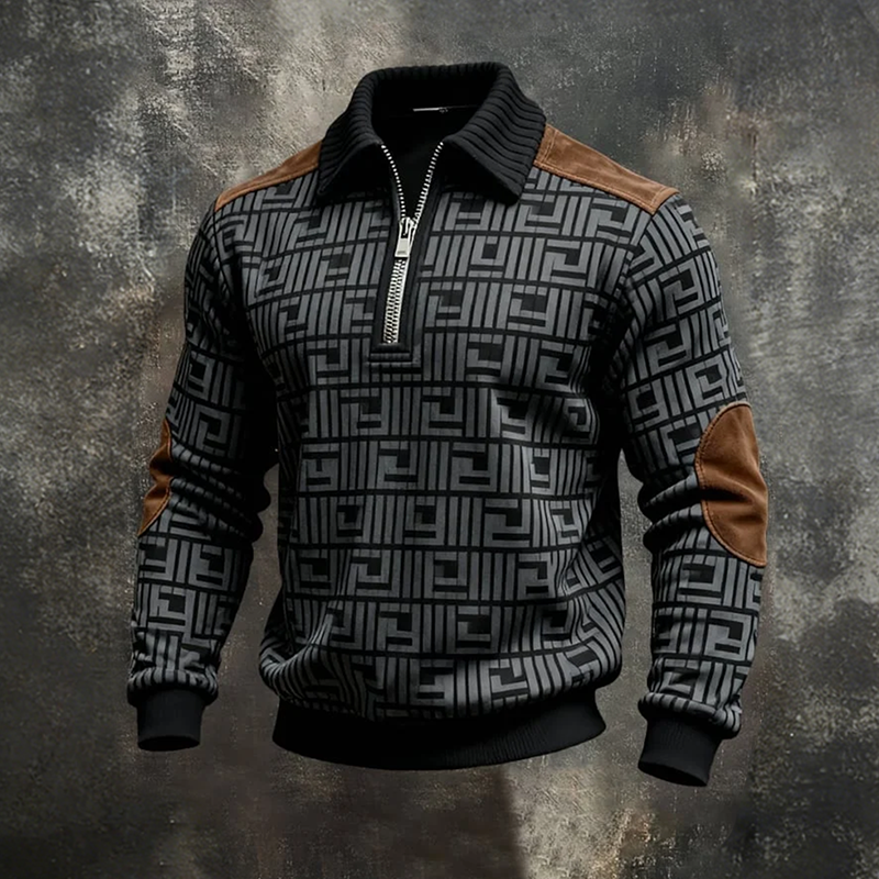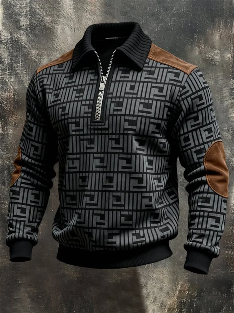 Men's Casual Geometric Design Long-sleeved Polo Shirt