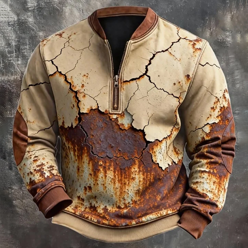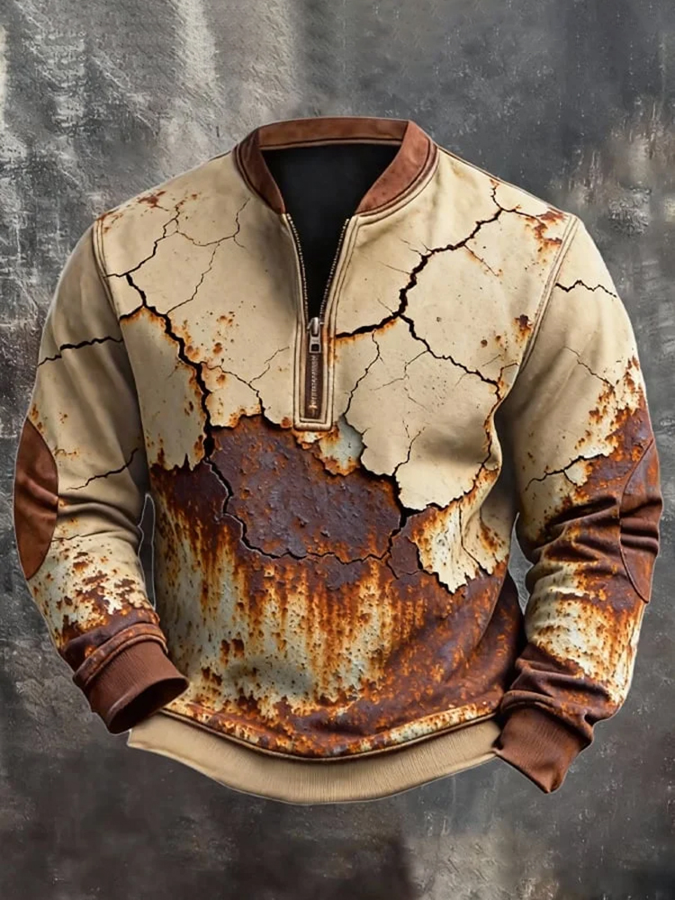Men's Rust Art Contrast Color Print Half Zip Sweatshirt