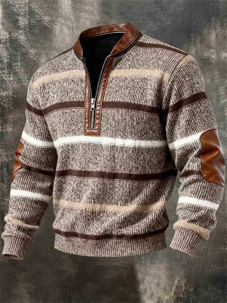 Men's Striped Colorblock Print Quarter Zip Sweatshirt