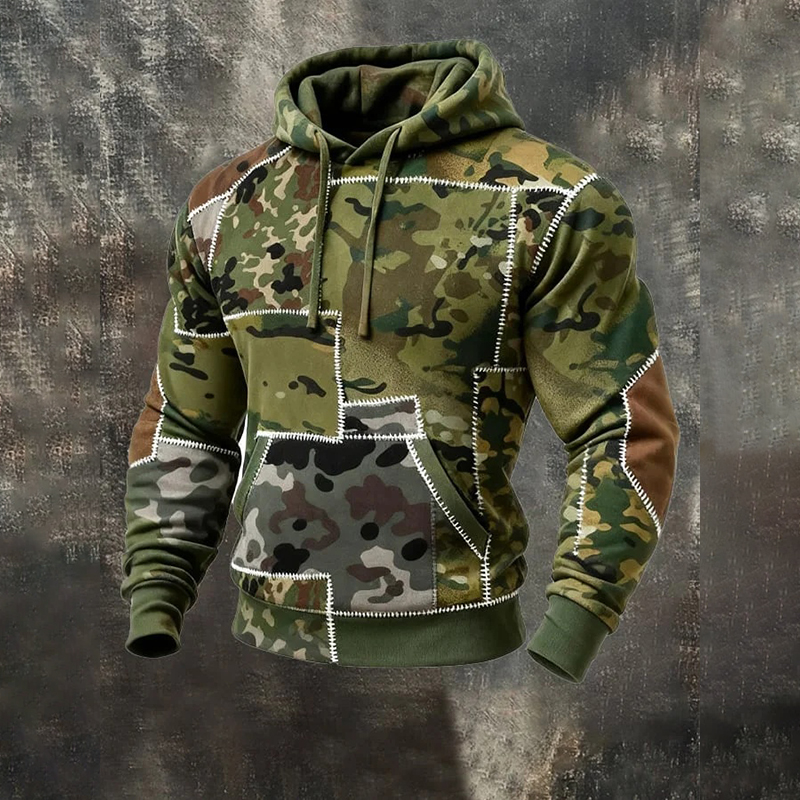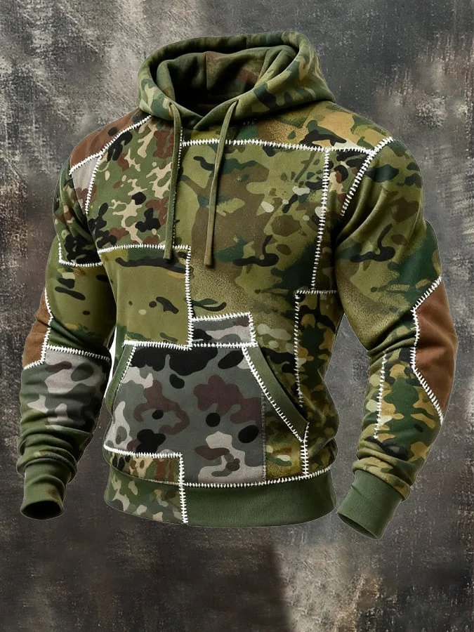 Men's Retro Distressed Color Block Camouflage Print Casual Long Sleeve Sweatshirt