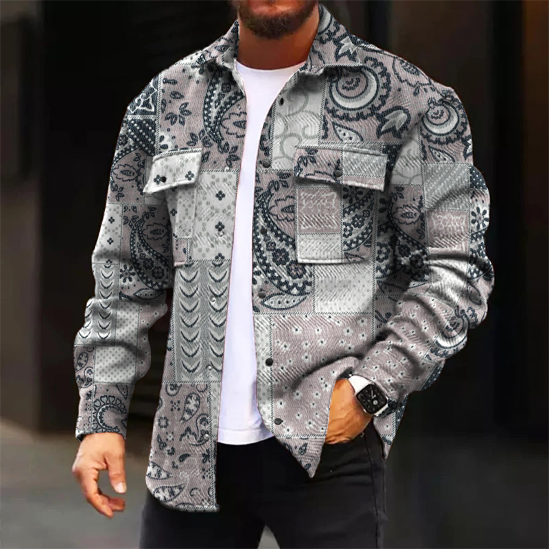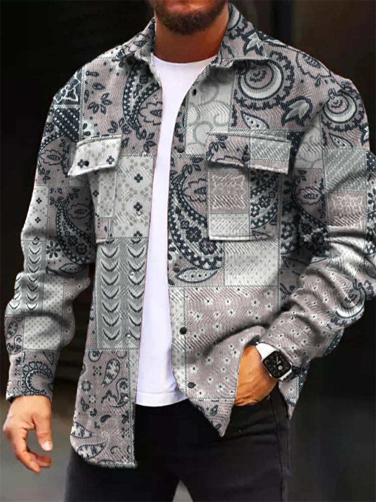 Men's Casual Jacket Art Paisley Print Long Sleeve Pockets Jacket