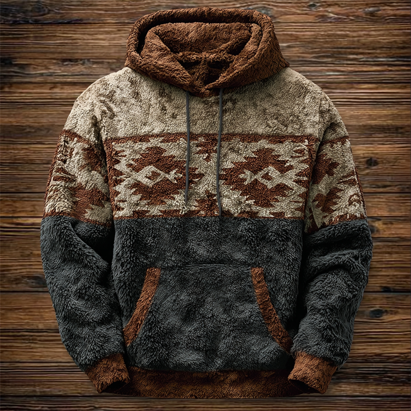Men's Vintage Western Aztec Cozy Plush Hoodie