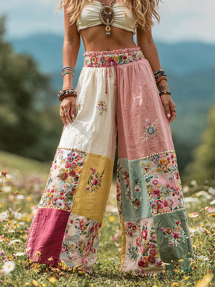 Women's Bohemian Patchwork Casual Wide Leg Pants
