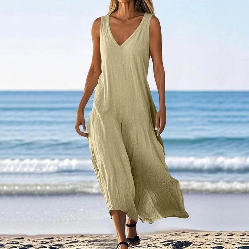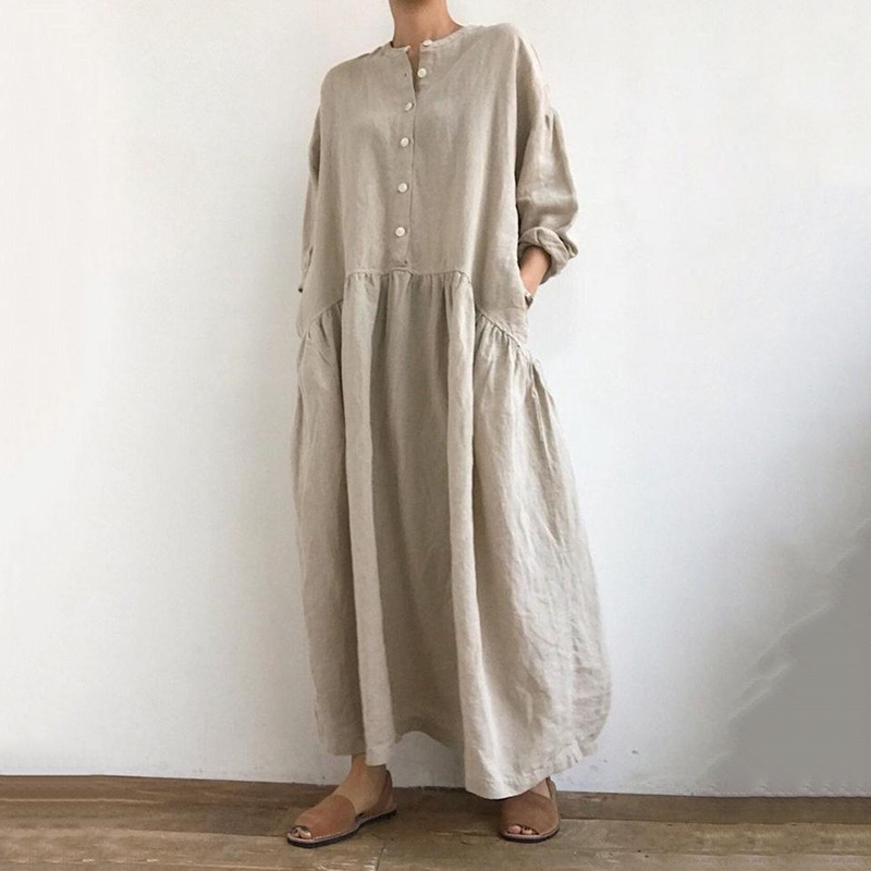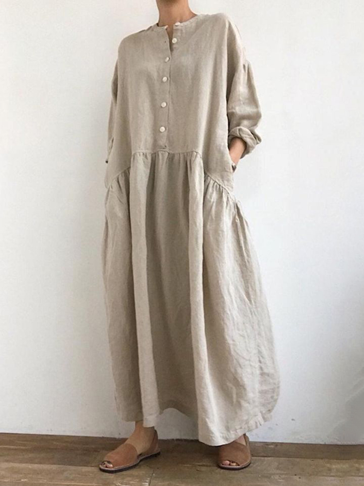 Women's Solid Color V-neck Linen Blend Casual Midi Dress
