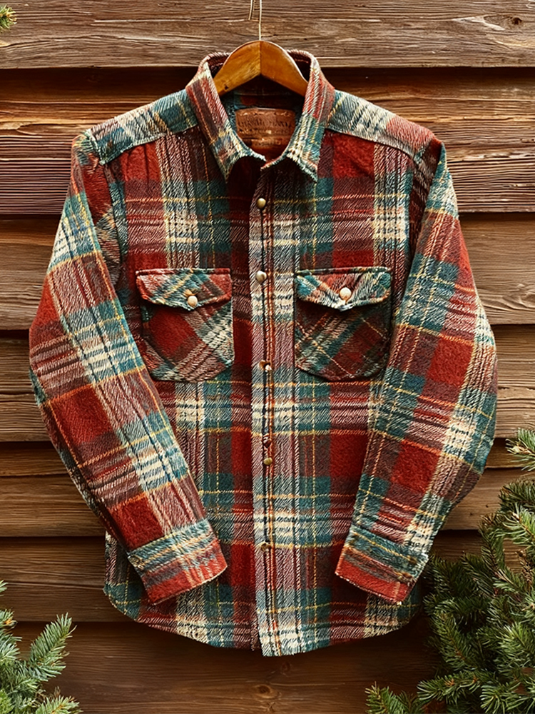 Men's Christmas Retro Checkered Cotton And Linen Shirt
